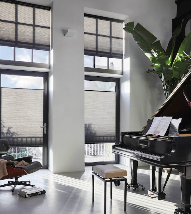 Duette® shades bestaan uit een dubbele laag stof die een soort honingraatstructuur vormt. Door de dubbele laag stof is een dubbele plissé, zoals duettes ook worden genoemd, duurzaam en warmte- en koudewerend.