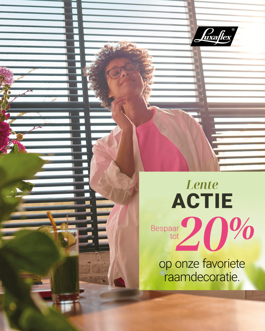 Dit voorjaar profiteer je van (tot) 20% korting op geselecteerde stoffen en lamellen: de voorjaarsfavorieten.