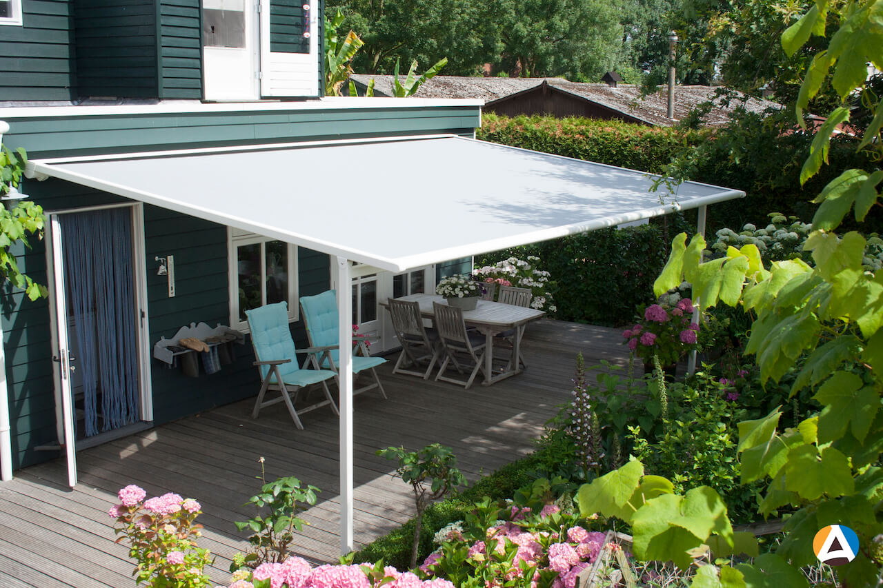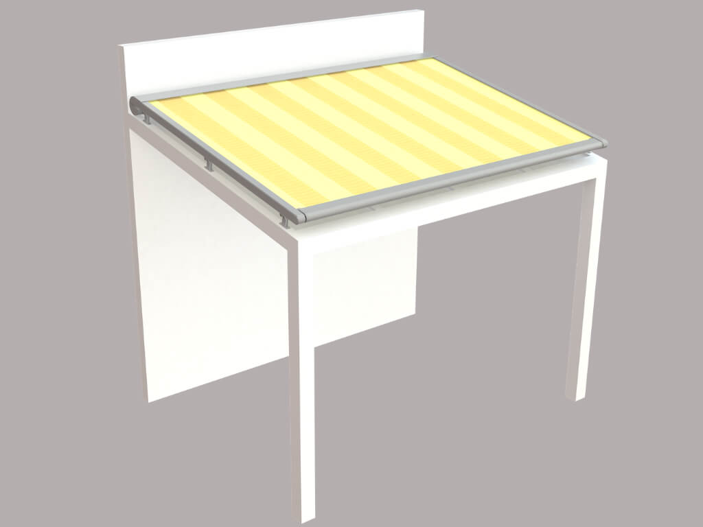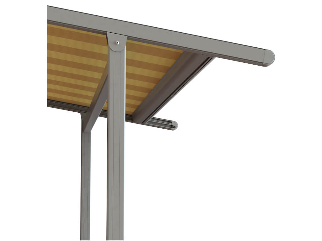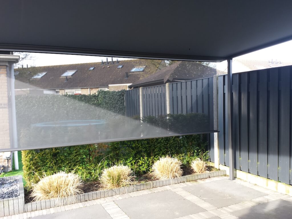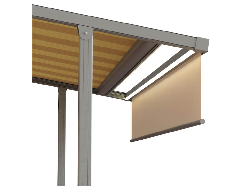 Uniek is de mogelijkheid om een extra geïntegreerd doek aan dit model toe te voegen. Dat doek is verticaal uit te rollen en biedt een perfecte oplossing tegen een laagstaande zon.