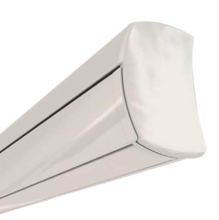 - Optionele doekspleetafdichting verkrijgbaar bij een gekoppeld scherm (2 doeken) waarbij d.m.v. een tussenrol de doekkier wordt afgedicht.
