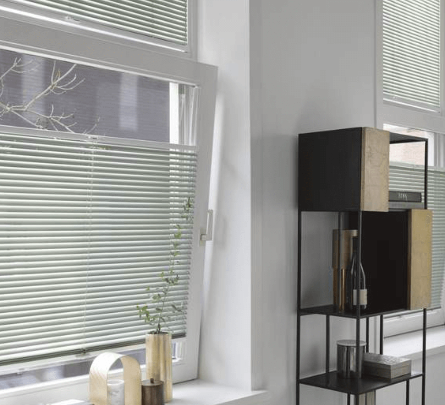 Horizontale jaloezieen staan prachtig bij draaikiepramen. Ze kunnen naadloos worden geïntegreerd in het raamkozijn met zijgeleiders, die de jaloezie nauwkeurig in positie houden wanneer het raam schuin is geopend. Voor toepassing in draaikiepramen kies je voor 16 of 25 mm jaloezieën.